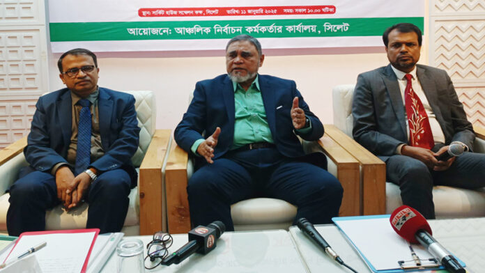 শনিবার (১১ জানুয়ারি) সকাল ১০টায় সিলেট সার্কিট হাউসের সম্মেলনকক্ষে ভোটার হালনাগাদ ও ত্রয়োদশ জাতীয় সংসদ নির্বাচন উপলক্ষে সিলেট জেলার সব নির্বাচন কর্মকর্তার সঙ্গে মতবিনিময় সভা শুরুর আগে সাংবাদিকদের এ কথা বলেন।