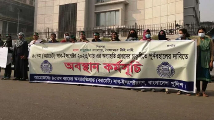চাকরিপ্রত্যাশীরা বলেন, আমরা শান্তিপূর্ণ অবস্থান কর্মসূচি পালন করছি। কোনো স্লোগান নেই, বিক্ষোভ নেই। আমরা আমাদের দাবির পক্ষে দাঁড়িয়েছি। আমরা আশা করছি সরকার এ বিষয়ে দ্রুত একটা ইতিবাচক সিদ্ধান্ত নেবে। ২০২৩ সালের নভেম্বরে ৪০তম ব্যাচের ৮২৭ জনের ট্রেনিং শুরু হয়। পরে গত বছরের অক্টোবর থেকে ৪ দফায় শৃঙ্খলা ভঙ্গের দায়ে ৩২১ জনকে অব্যাহতি দেয়া হয়।