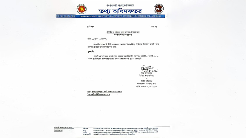 রোববার (৩ আগস্ট) তথ্য অধিদপ্তরের সিনিয়র তথ্য কর্মকর্তা মো. রুবেল রানার সই করা এক বিবরণীতে এ কথা বলা হয়।